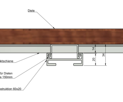 - Die spezielle Form der Profile vermindert die Gefahr abgescherter Befestigungsschrauben in Folge von Quell- und schwindbewegungen der Terrassendielen.